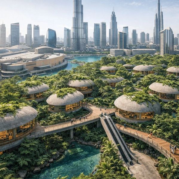 Jungle Mall is a conceptual retail and urban development model that rethinks the future of shopping environments in response to changing consumer behavior, climate conditions, and experiential expectations in the UAE. Rather than a conventional enclosed mall, the project is conceived as an open, layered spatial system where architecture, landscape, circulation, and program operate together. Retail is integrated with shaded outdoor spaces,