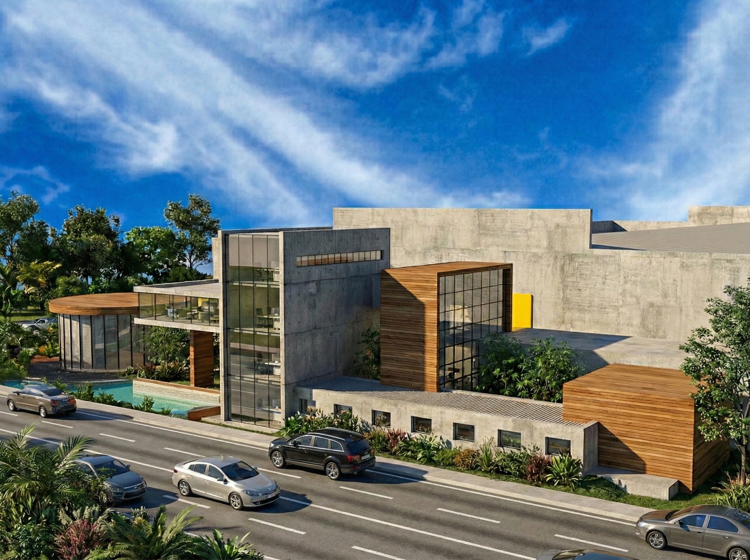 Unlike typical industrial office blocks that remain purely utilitarian.